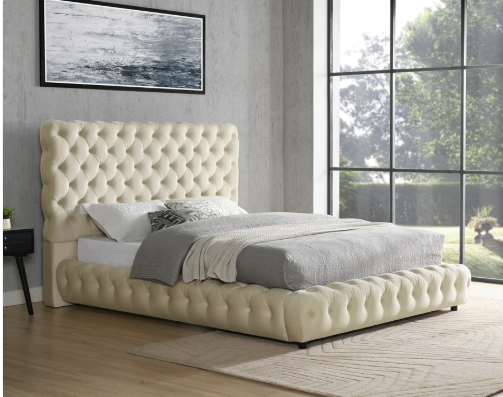 Description Fully Extension Ball Bearing Side Metals Glide Drawers Headboard and Footboard is Accented with Button Tufting Padded Rectangular Headboard and Footboard in Luxurious Dark Gray Velvet Upholstery B1689-EK Eastern King Bed 82.5 x 89.5 x 68H B1689-Q Queen Bed 66.5 ...