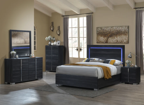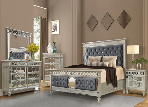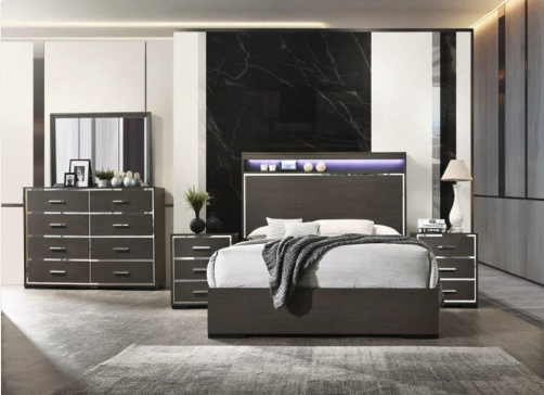 • Padded Rectangular Headboard and Footboard in Luxurious Dark Gray Velvet Upholstery